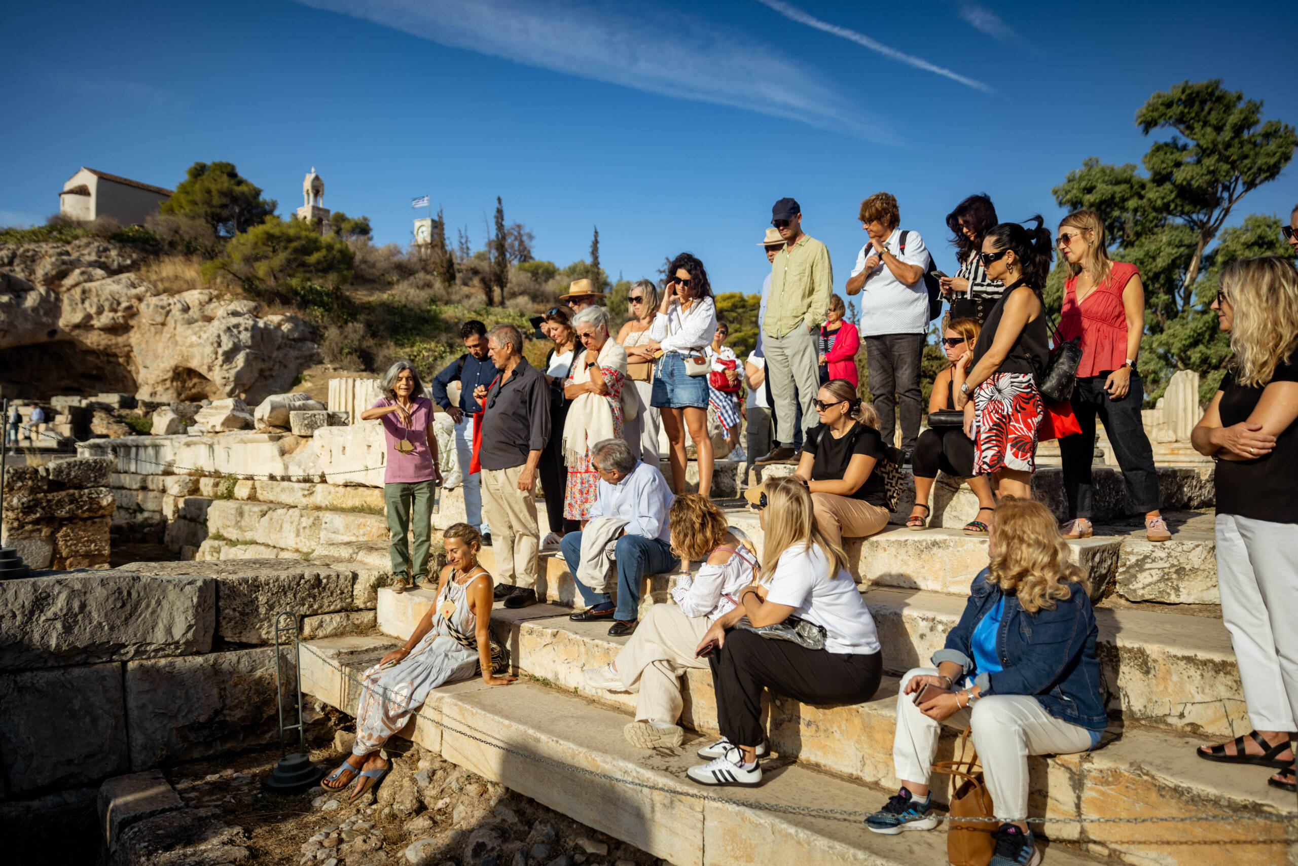 The artistic events of the Symposion have been met with great acclaim, notably the sold-out performance Sacred Paths – From the Mysteries of Eleusis to Byzantine Chant and the Mevlevi Dervish Tradition at the archaeological site of Eleusis. This unique production, featuring the Whirling Dervishes of Istanbul, the Byzantine Choir of the Association of the Constantinopolitan Friends of Music in Athens, Sokratis Sinopoulos, master of the lyra, and acclaimed director Michail Marmarinos as narrator, captivated audiences both at Eleusis and later at Megaron – The Athens Concert Hall, where it also earned warm applause.