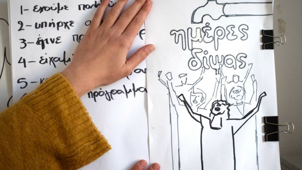 Centring on a folk festivity − the panigíri (feast day celebration) of Saint George held on 23 April, close by the church on Pagalou Street − Panigíri is a live cinema festival.