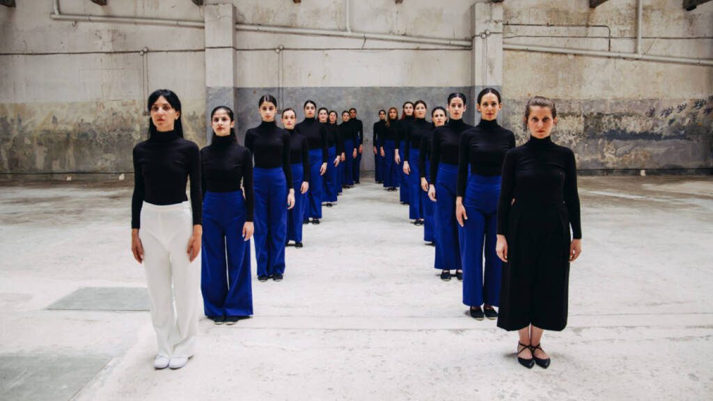 The female vocal ensemble Chóres of Elefsina, under the artistic direction of Marina Satti, presents a dynamic polyphonic programme in the public space of the city.