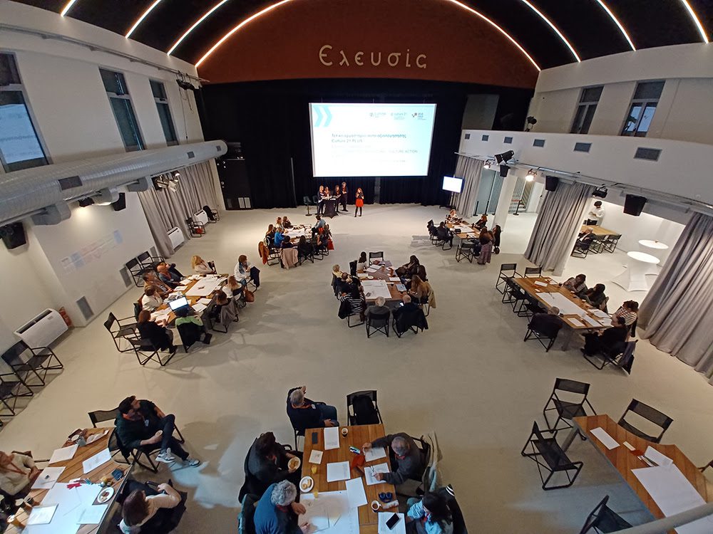 2023 Eleusis European Capital of Culture organised the second self-assessment workshop in the framework of the international participatory planning programme Pilot Cities. The activity took place at Cine Eleusis on Saturday 9 March, where residents of the city defined the place of culture in Elefsina as well as their priorities for the future. An initiative by the European organisation in cooperation with the Culture Committee of the international UCLG organisation – United Cities and Local Governments.