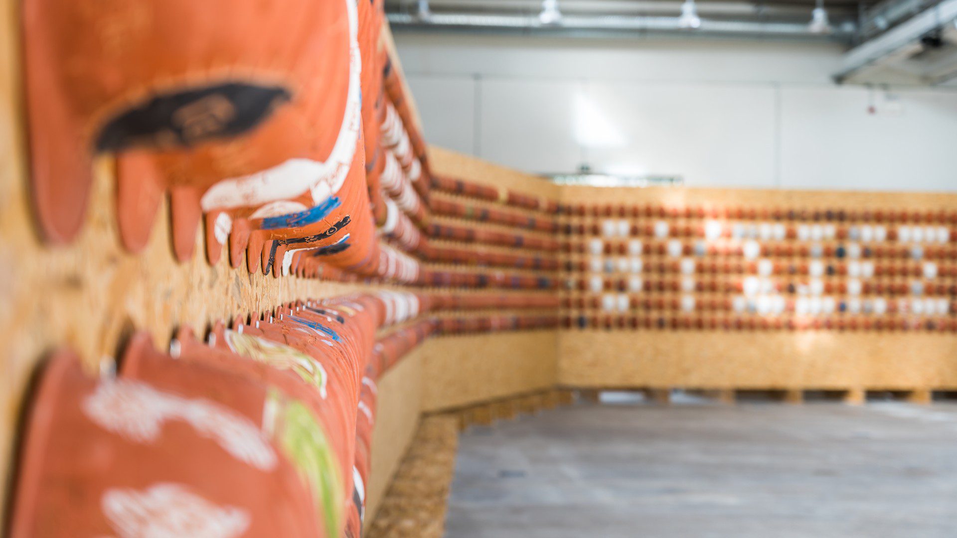 Περισσότερα από 2.000 σε μία έκθεση – αφιέρωμα σε όσους εργάζονται στην Ελευσίνα και στην ευρύτερη Δυτική Αττική! Το έργο αποτελείται από 2.000 χειροποίητα πήλινα κράνη με σημείο αναφοράς το εργατικό δυναμικό της περιοχής και την έννοια της εργασίας μέσα από τη ματιά των κατοίκων του Θριάσιου πεδίου. Ο Sandoval επισκέφτηκε εργοστάσια στην Ελευσίνα και στη Δυτική Αττική, συνομίλησε με τους εργάτες, ενώ, μετά και από ανοιχτή πρόσκληση συμμετοχής προς την τοπική κοινότητα, περισσότεροι από 1.000 εν ενεργεία ή συνταξιούχοι εργαζόμενοι συμμετείχαν στο έργο συμπληρώνοντας ένα ερωτηματολόγιο με προσωπικά τους στοιχεία, όπως τα ονόματα των αγαπημένων τους προσώπων, τα χόμπι και τις προτιμήσεις τους. Το υλικό αυτό, μαζί με λέξεις που συγκεντρώθηκαν από εργαζόμενους της ευρύτερης περιοχής για τη σημασία που έχει γι’ αυτούς η εργασία, αποτέλεσε τη βάση με την οποία δούλεψε ο κολομβιανής καταγωγής καλλιτέχνης για να διακοσμήσει το κάθε κράνος ξεχωριστά. Όλα τα κράνη εκτίθενται σε μία μεγάλης κλίμακας εγκατάσταση στο πρώην εργοστάσιο χρωμάτων, η οποία συνοδεύεται από ένα ηχητικό τοπίο που δημιούργησε αποκλειστικά για το έργο ο διεθνής sound artist Γιώργος Μωραΐτης, συνθέτοντας μία ξεχωριστή βιωματική εμπειρία για τον επισκέπτη με πολλαπλές αναφορές στο βιομηχανικό περιβάλλον της περιοχής