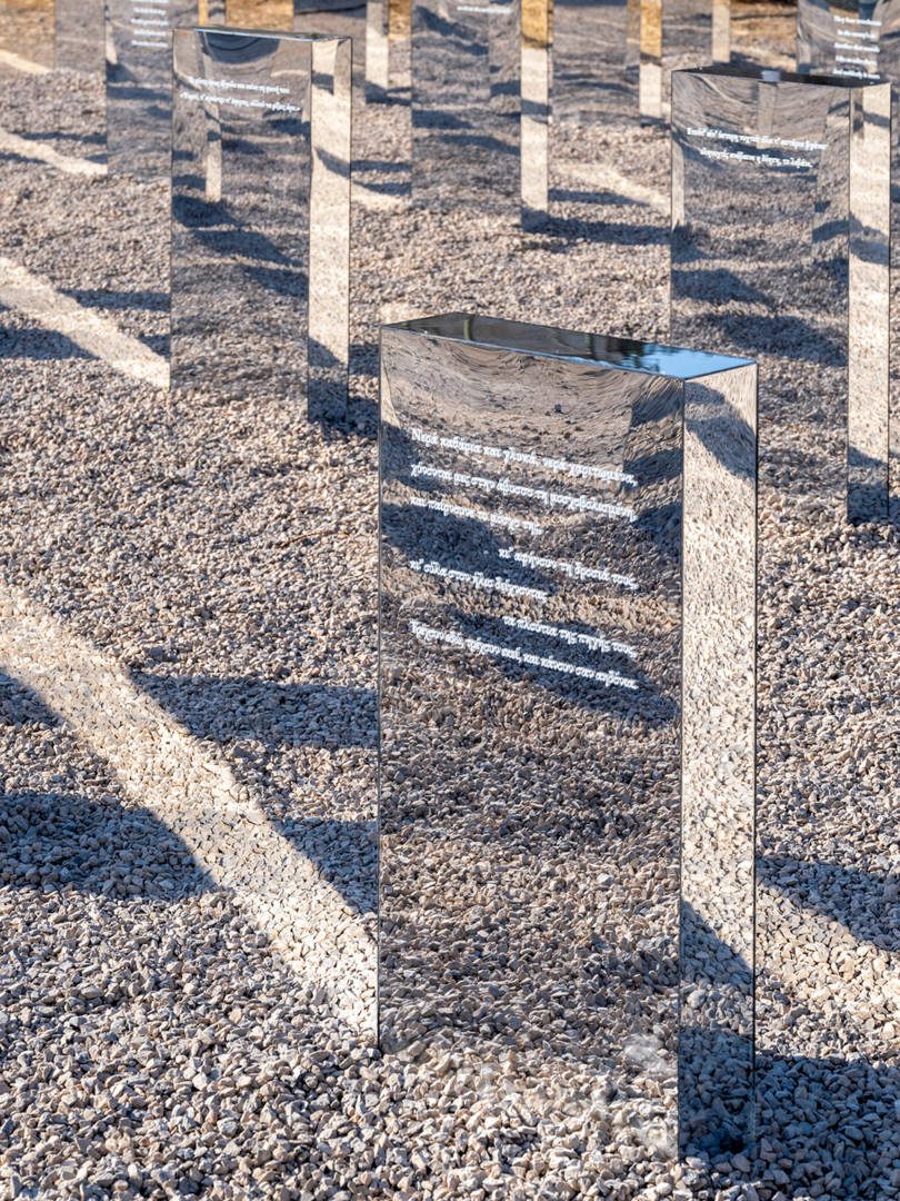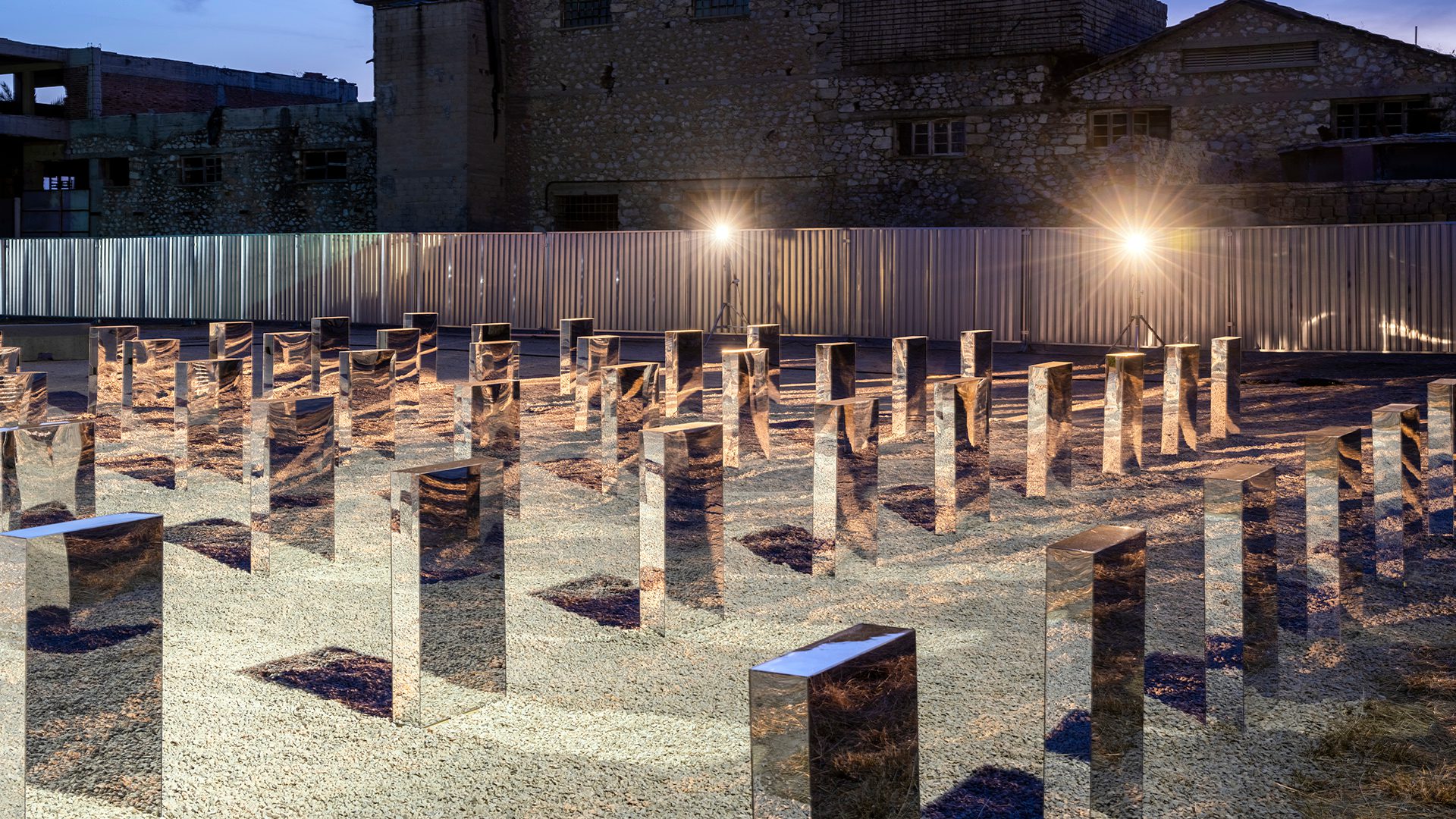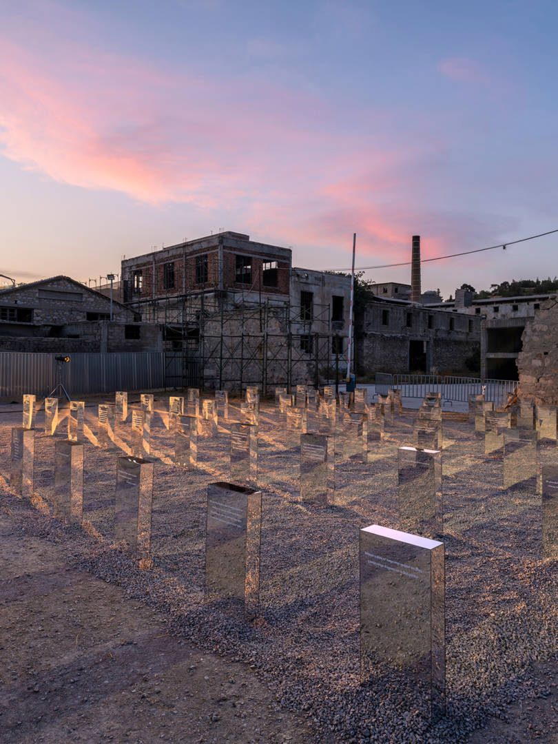 Η in situ εικαστική εγκατάσταση “Θραύσματα” επιχειρεί να συνθέσει το ίχνος της παράστασης “Ελεύθεροι Πολιορκημένοι” του Διονύσιου Σολωμού, σε σκηνοθεσία Ελένης Ευθυμίου, που παρουσιάστηκε στον ίδιο ακριβώς τόπο, τον Ιούνιο 2021. Οι στίχοι του ποιήματος που χρησιμοποιήθηκαν τότε, διαμοιράζονται σε 60 στήλες από καθρέπτη, παραπέμποντας σε στρατιωτική μονάδα παραταγμένη ή και σε κοιμητήριο. Μεταφέροντας στον χρόνο και τον χώρο τους στίχους του κορυφαίου, οδυνηρά επίκαιρου ποιητικού έργου του Σολωμού, προσφέρουν μια σπάνια ευκαιρία στους επισκέπτες, να δουν τον εαυτό τους ως πολιορκημένους Μεσολογγίτες και να στοχαστούν πάνω στη δική τους πραγματικότητα, αν η ζωή τους τοποθετούσε σε εκείνη την ιστορική συγκυρία. Μια σημαντική αφορμή για προβληματισμό πάνω στη διαλεκτική της Ιστορίας, μέσα στη ζοφερή συγκυρία της τρέχουσας επικαιρότητας του πολέμου.
