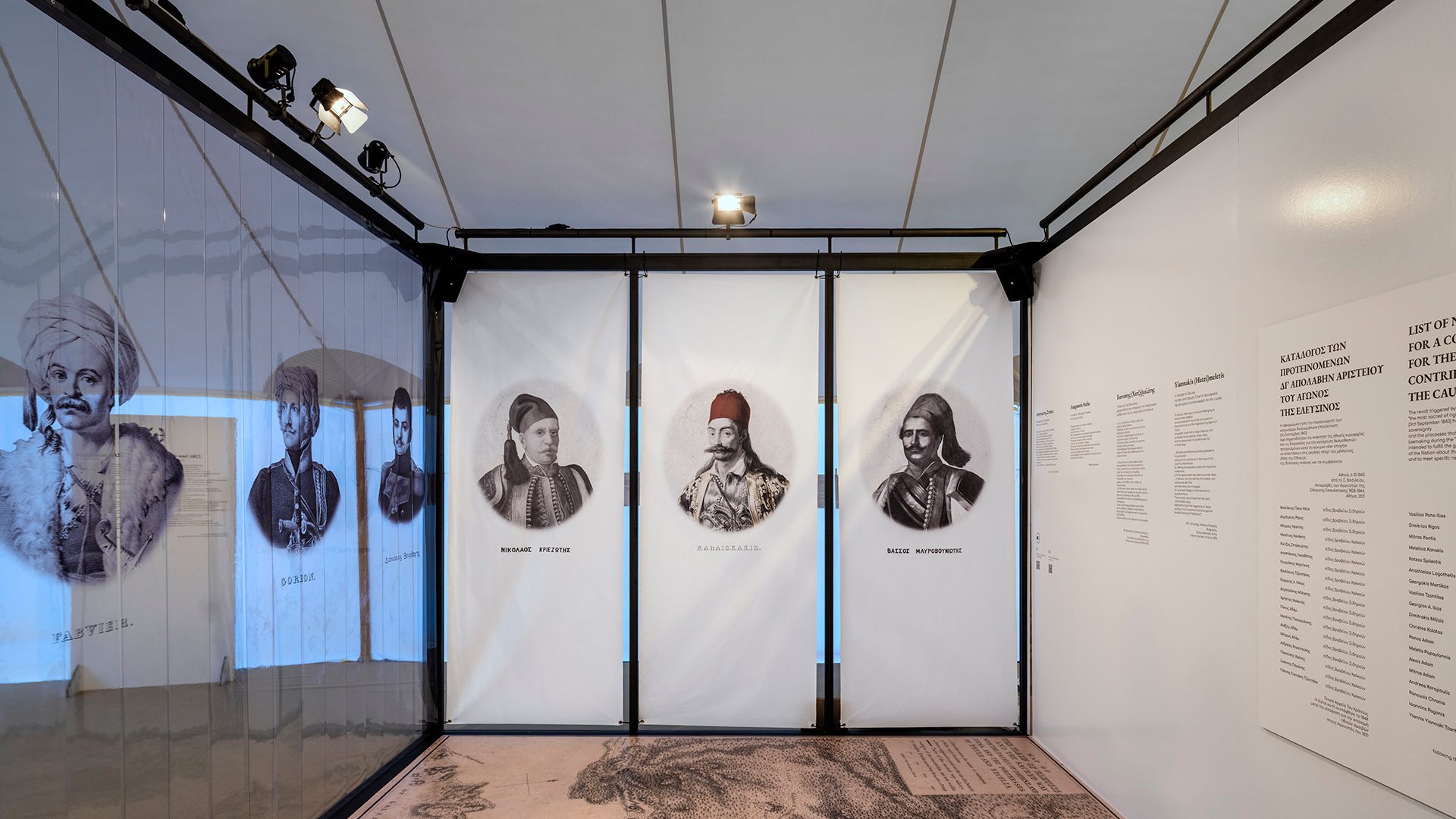 Πώς συνδέεται το Μεσολόγγι με το στρατόπεδο στην Ελευσίνα, ίσως αναρωτηθεί κανείς. Με την εγκατάσταση του μεγαλύτερου και πολυπληθέστερου οργανωμένου στρατοπέδου των Ελλήνων και αρχηγό τον Γεώργιο Καραϊσκάκη, ως προπύργιο του αγώνα κατά των Τούρκων στη Στερεά Ελλάδα και ανάχωμα στη δράση του Κιουταχή, έρχεται η κορύφωση το 1826. Και είναι ακριβώς αυτό το “στρατόπεδο” της Έκθεσης, που συμβολίζει την έναρξη, το τέλος αλλά και τη δραματικότητα εκείνης της περιόδου, τη “φάση της κάμψης” της Επανάστασης με την εισβολή στην Πελοπόννησο, την πτώση του Μεσολογγίου και τη χαμένη μάχη των Αθηνών με τον θάνατο του Γεώργιου Καραϊσκάκη. Είναι οι “παράδοξες” ήττες που χαλυβδώνουν την τελική νίκη, έχοντας ενεργοποιήσει στο μεταξύ την ουσιαστική εμπλοκή των “Μεγάλων Δυνάμεων”.